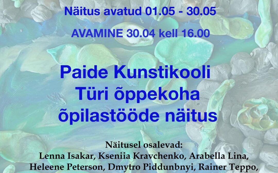 30. aprillil 2026 avatakse Türi Raamatukogus Paide Kunstikooli Türi õppekoha õpilastööde näitus “Maa ja taeva vahel”.